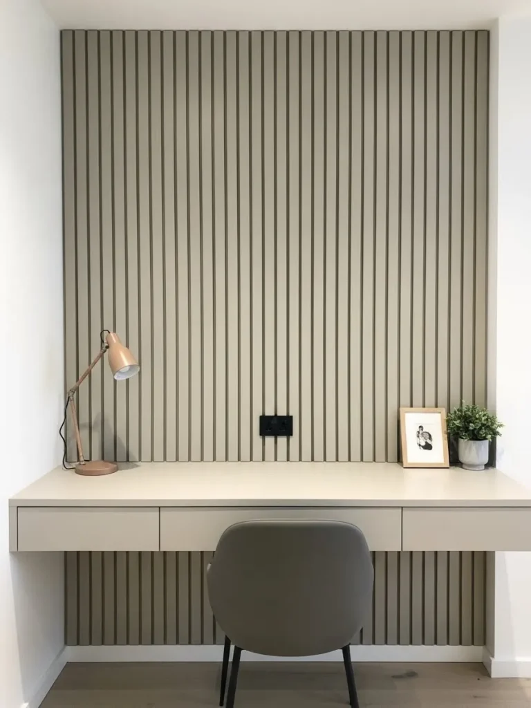 Soft Greige Slatted Home Office Nook