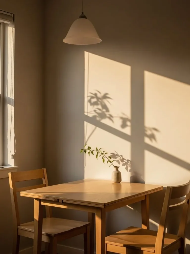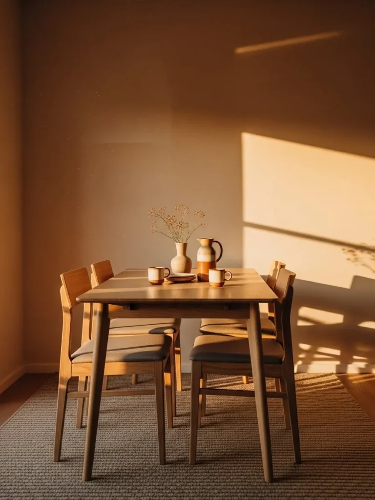 Warm Neutral Dining Room With Golden Hour Glow