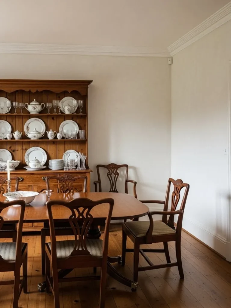 I really appreciate how timeless this room feels. It has that collected look that never seems to chase trends. The paint color gives everything room to breathe while still feeling cozy. This is the kind of dining room that feels ready for both everyday meals and special occasions without needing to change a thing.