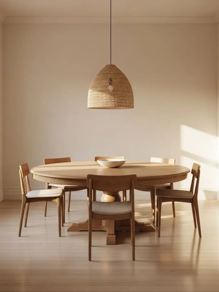 Soft Beige Dining Room With Woven Texture