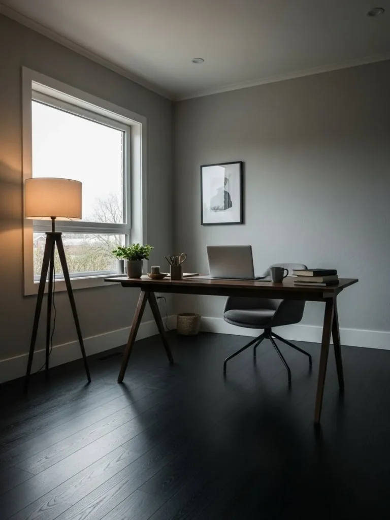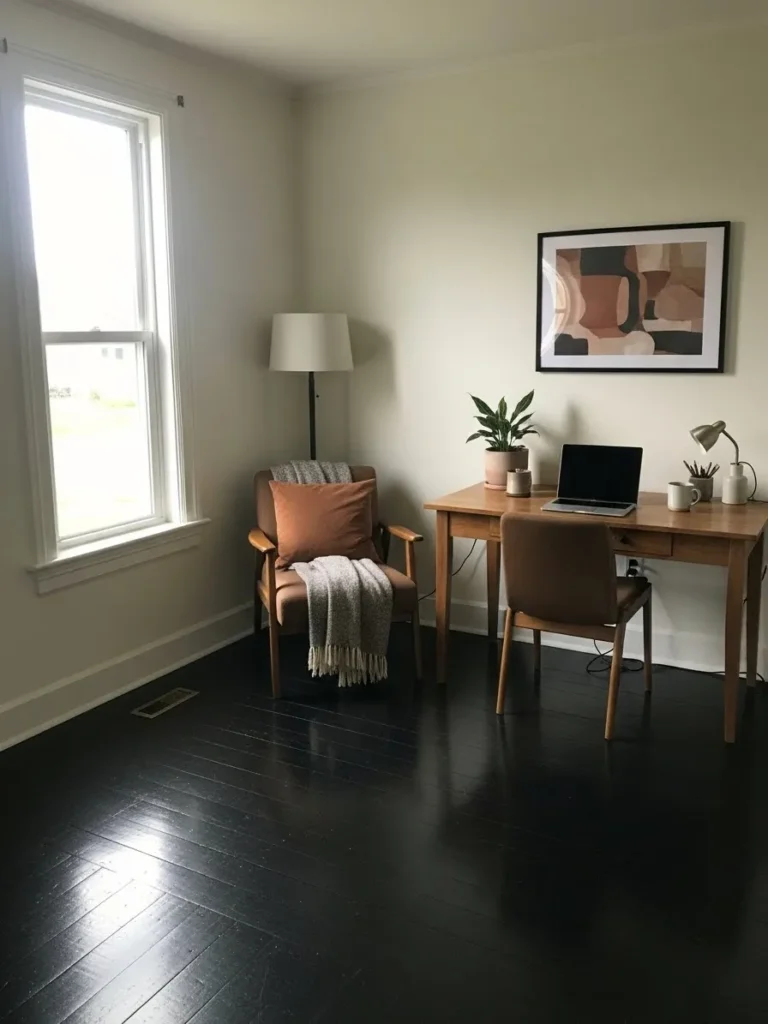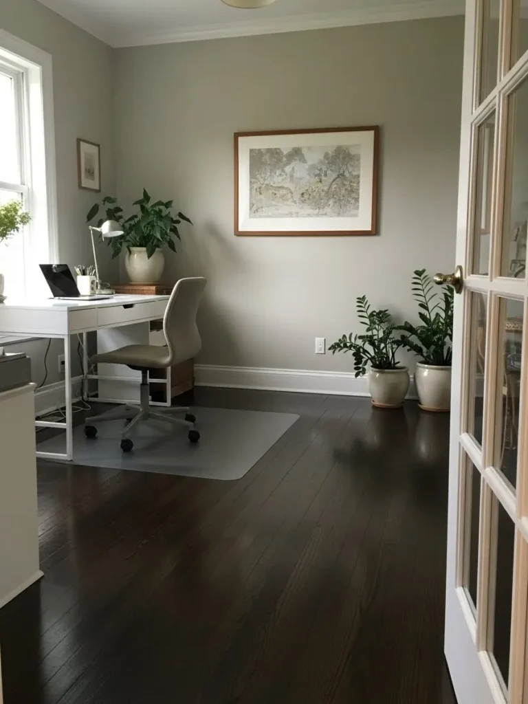 If you are into creating a workspace that feels polished without feeling heavy, the right paint color can completely change how dark floors show up in a room.