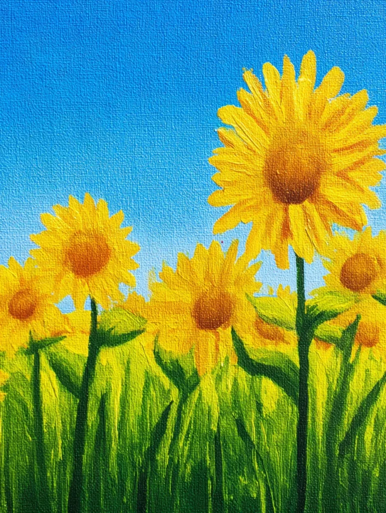 If you want to feel like summer is here, this project is perfect. Painting these flowers is a fantastic way to practice blending different yellows to get that glow just right. It helps me unwind because I get to focus on those happy little petals without worrying about perfection. You will find that filling in that wide-open blue space is such a satisfying way to let your mind wander and relax.