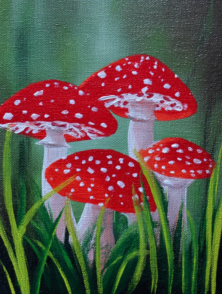 Getting creative with these little forest treasures is such a fun way to bring a bit of nature into your home. I love how simple shapes and bold colors can create something that feels so playful and storybook-inspired. It is incredibly relaxing to dot on those tiny white spots, almost like a meditative rhythm that helps me forget the busyness of the day. If you want a project that feels cheerful and grounded, this mushroom study is a fantastic choice to brighten up your canvas.