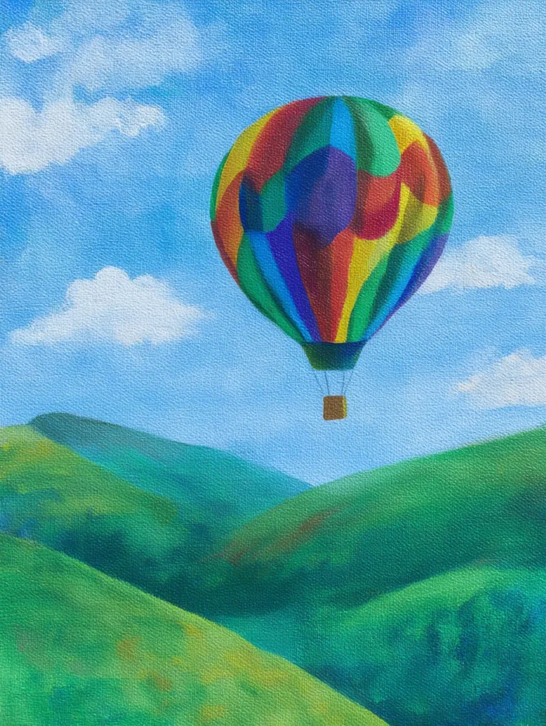 If you are looking for a project that feels like a breath of fresh air, this is the one to try. Painting the balloon gives me such a kick because it is an excuse to use every bright color on my palette without holding back. It is incredibly satisfying to work on those curved shapes and watch the balloon gain depth as the layers dry. You will find that creating the soft, rounded hills is a wonderful way to practice blending and achieving that smooth, natural look.