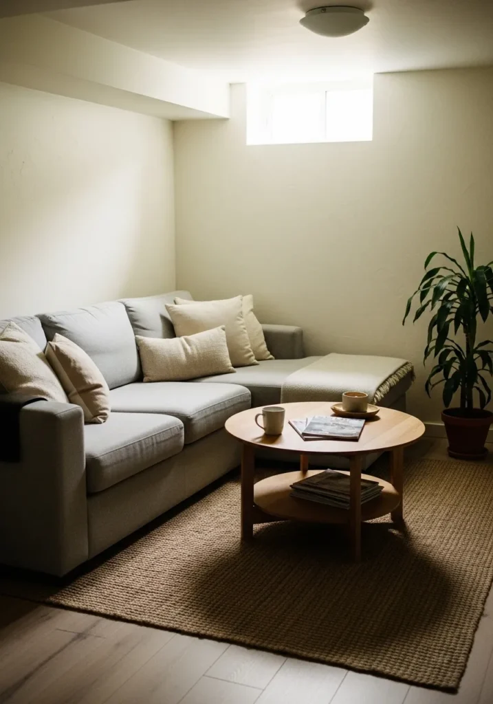 I love how cheerful this feels. Creamy shades always lift a basement. It makes the space feel fresh without losing that cozy feeling.