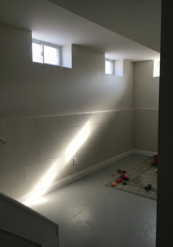 This basement play area is painted in pale taupe, a shade that reflects light while still feeling warm. The color keeps the room from feeling too busy and works well with open floor space. Light from the window adds a gentle glow.