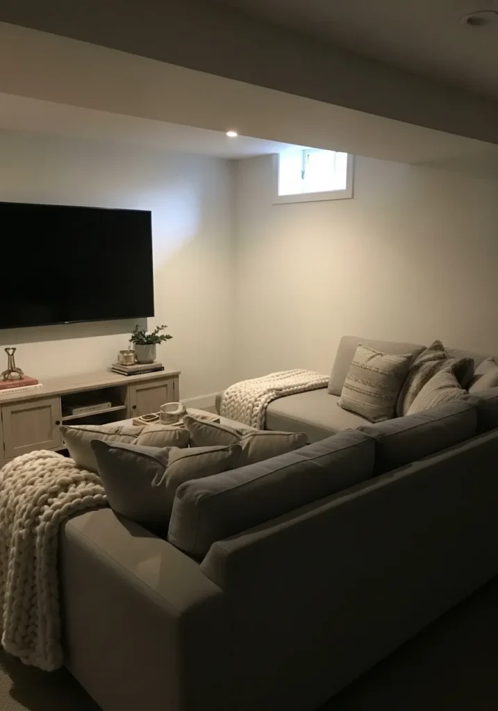 Soft White Basement Media Lounge Comfort