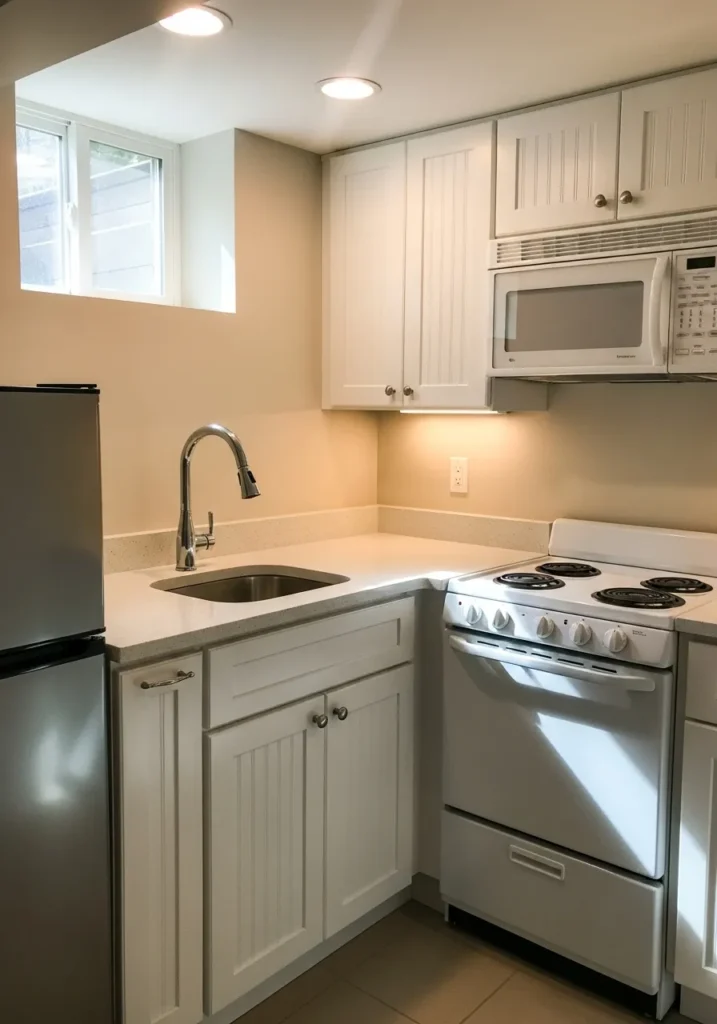 Soft White Basement Kitchenette Fresh Feel