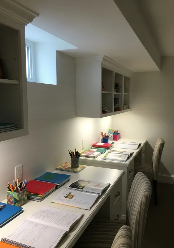 Soft White Basement Study Zone