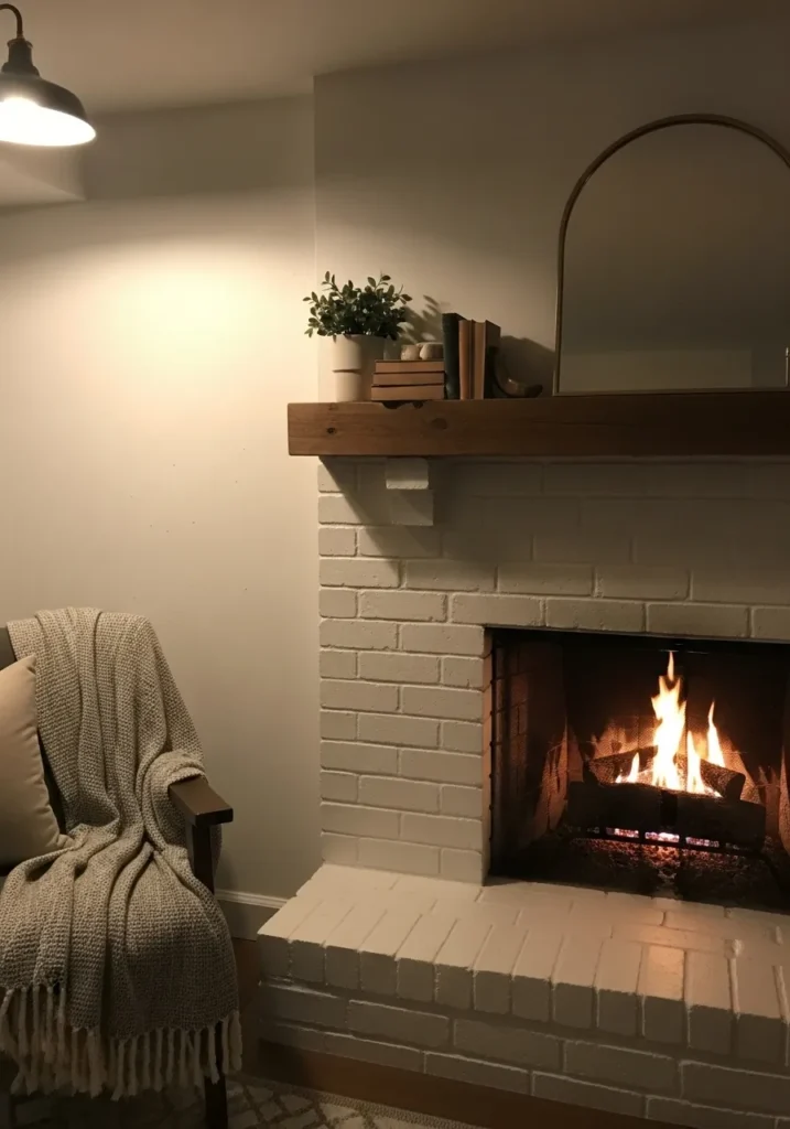 I love how comforting this feels. The soft white lets the fireplace shine without darkening the room. It feels cozy in a very natural way.