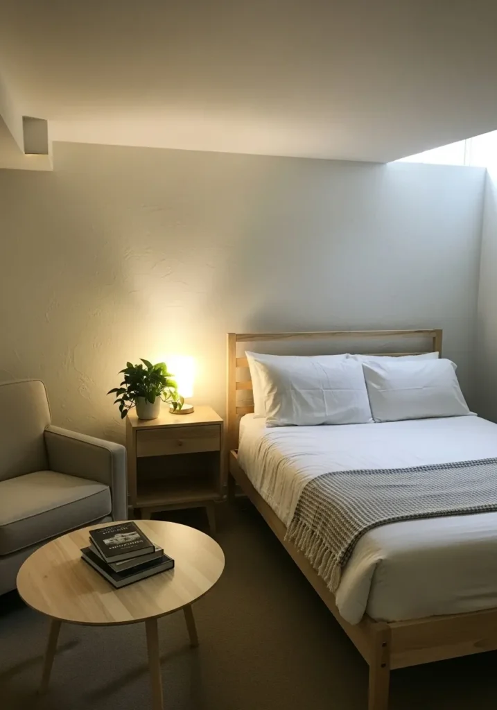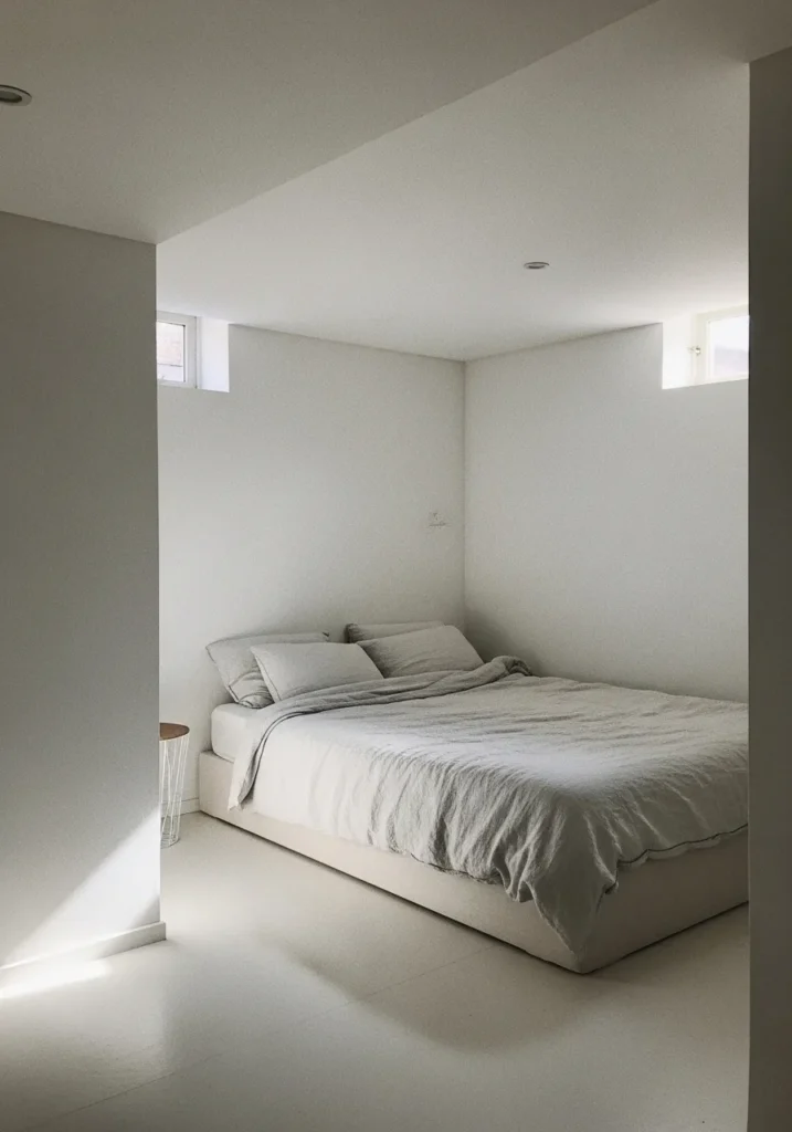 Soft White Basement Bedroom With Calm Glow