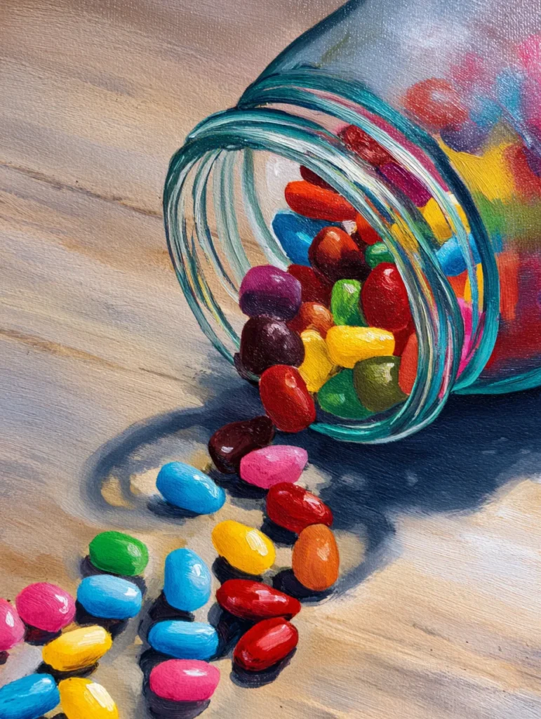 Playful Spilled Jelly Bean Jar