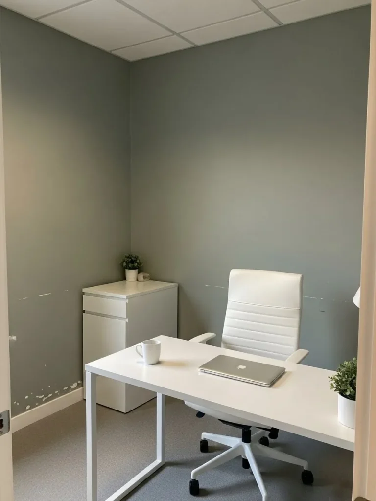 In my own workspace I have learned that the right paint color can turn simple white desks and shelves into something that feels styled and intentional.