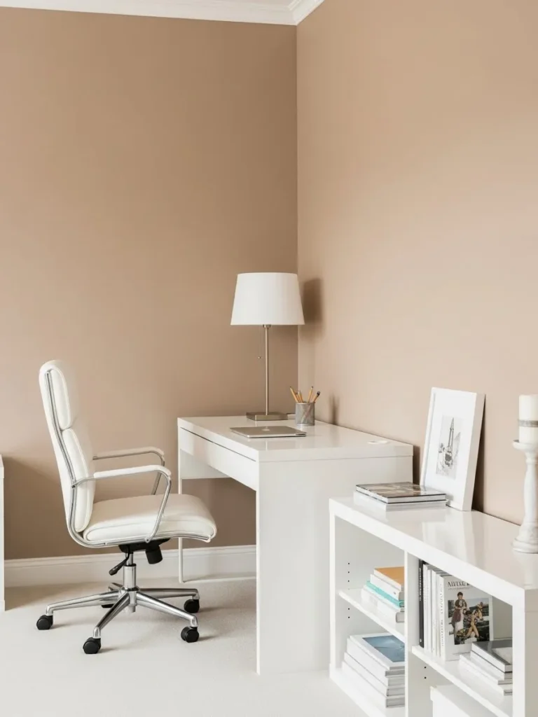 Warm Sand Home Office With Soft White Details
