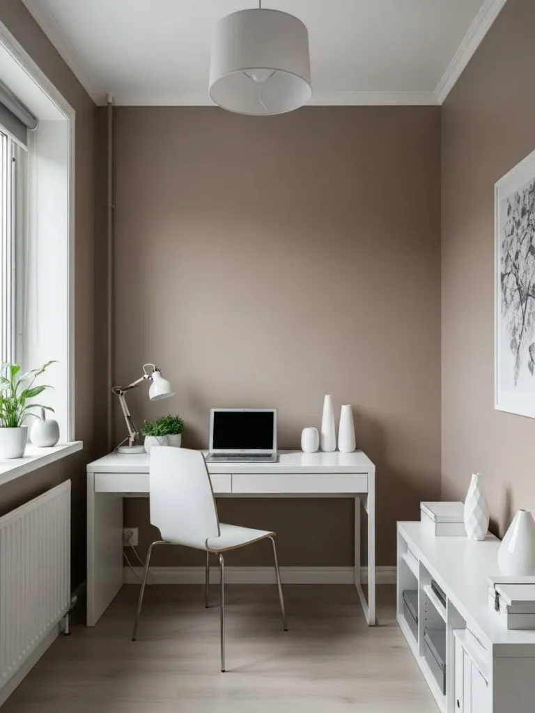 Warm Taupe Office With Crisp White Accents