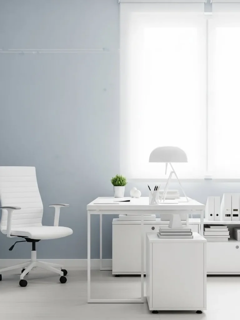 Soft Blue Gray Office With Clean White Lines
