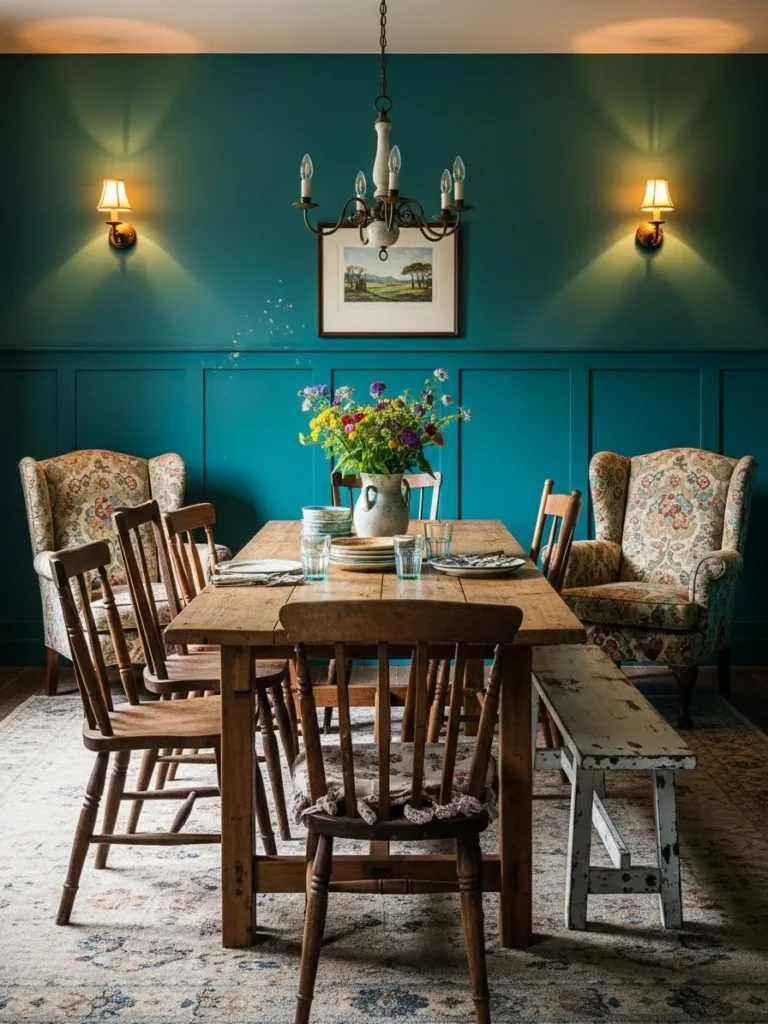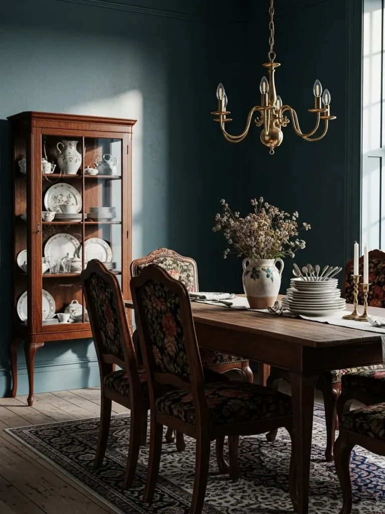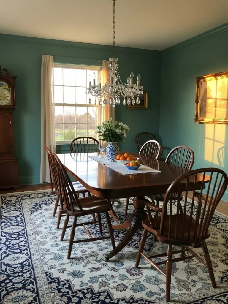 Vintage Teal Dining Room With Timeless Warmth
