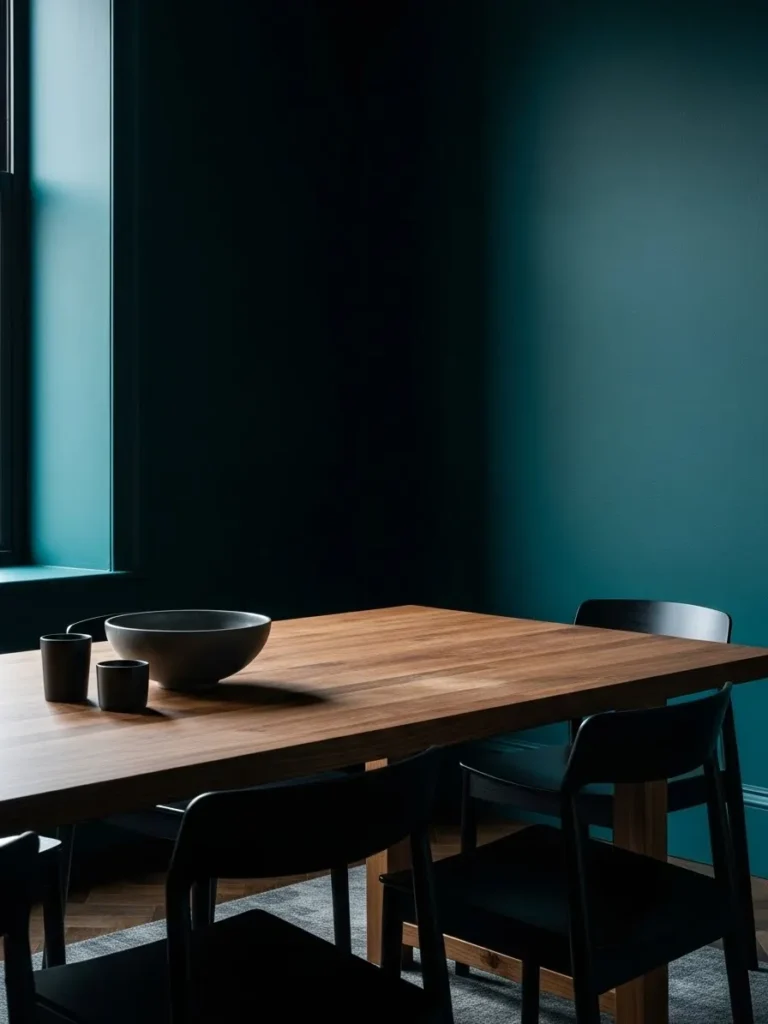 Moody Teal Dining Room With Dramatic Minimalism