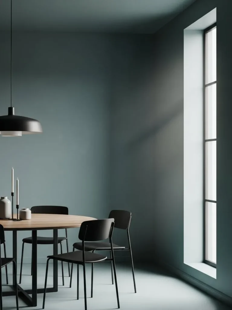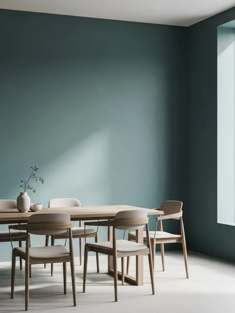 Minimal Teal Dining Room With Soft Daylight Calm