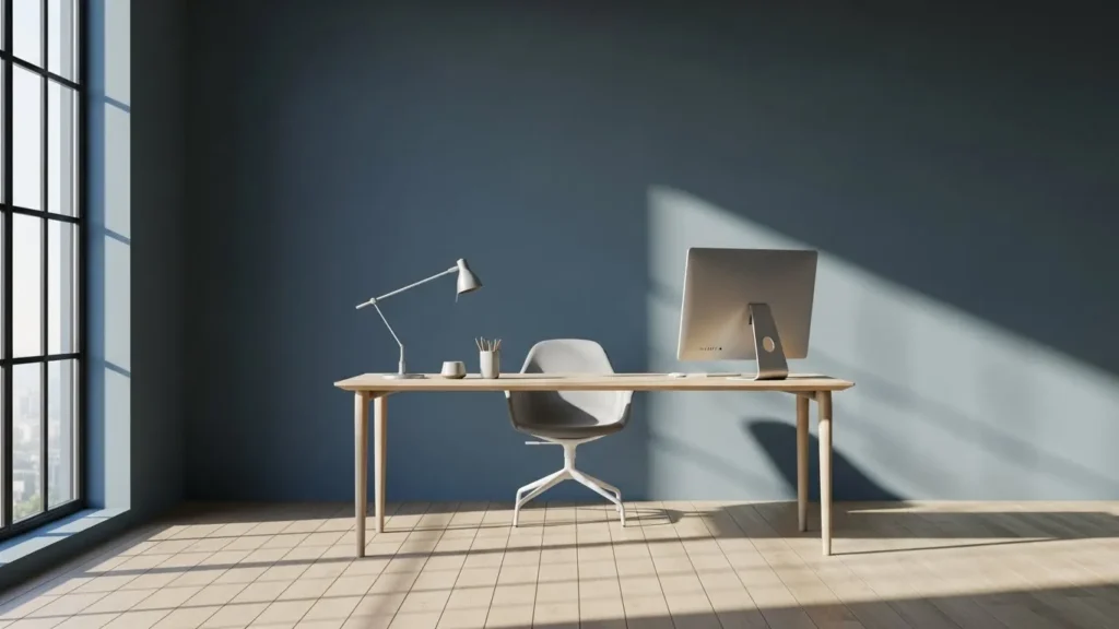Moody Blue Minimalist Office Corner